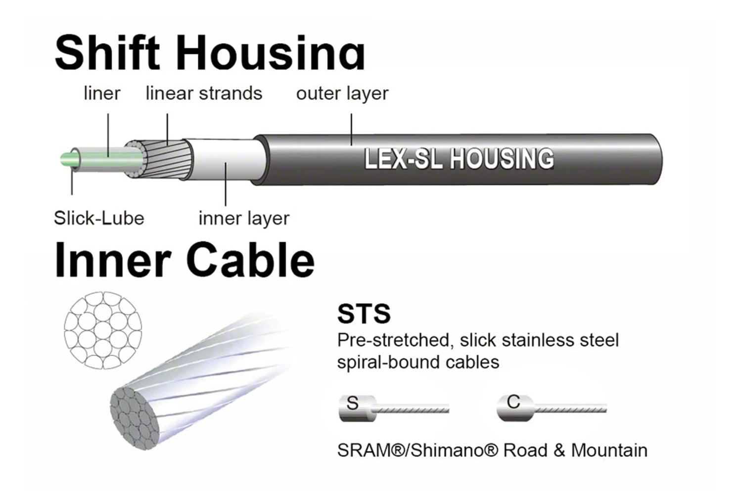 Universal Sport shift cable kits include everything you need to replace the front and rear derailleur cables and housing on a bike. Slick stainless cables are double-ended Campy & Shimano/SRAM. Speed-Lube ultra slick lubricant protects cable to ensure consistent performance.