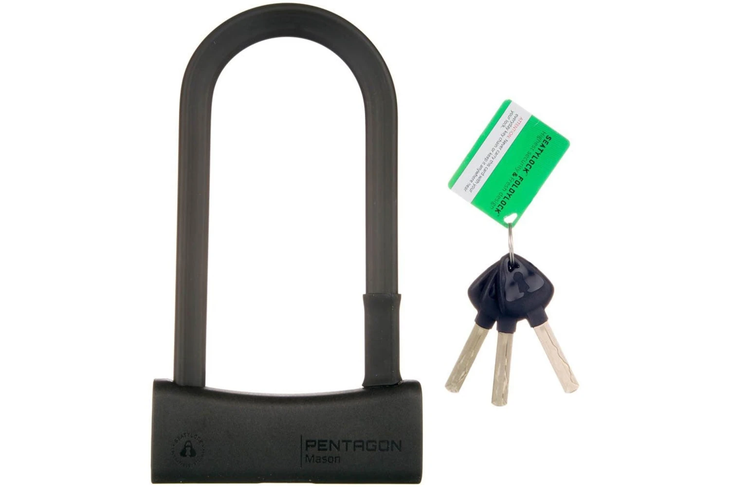 Heavy duty theft proof design made from hardened steel. Unique triangular shape crossbars for added strength/weight ratio. Double deadbolt construction protects against a twist attack. Lock cylinder and components are drill resistant with automatic shutter mechanism. Crossbars are coated for frame protection. A rattle elmination mechanism prevents the lock from shaking while riding. Lock Type: Key.